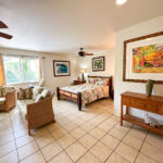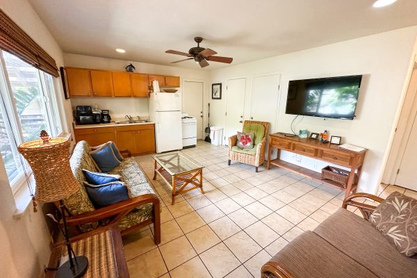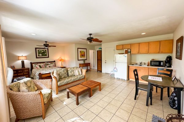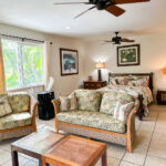 A private beach getaway. Our studio has one queen bed and a kitchenette.
